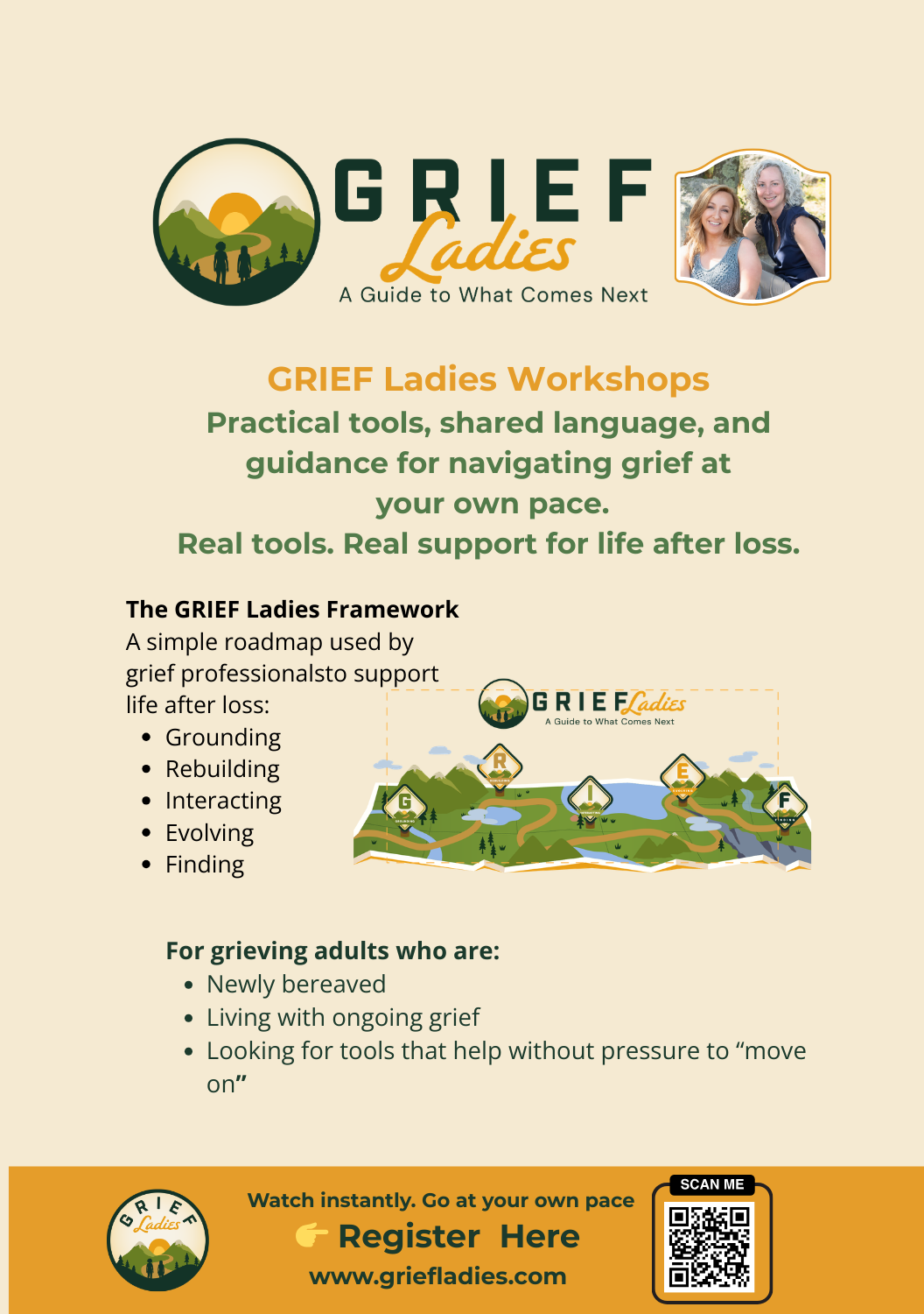 This self-paced workshop series offers clear, grief-informed guidance and practical tools to navigate loss in ways that honor your experience. Whether you're newly bereaved or living with ongoing grief, it's designed to work around grief's unpredictability: pause, rewind, start over, or come back whenever you need.