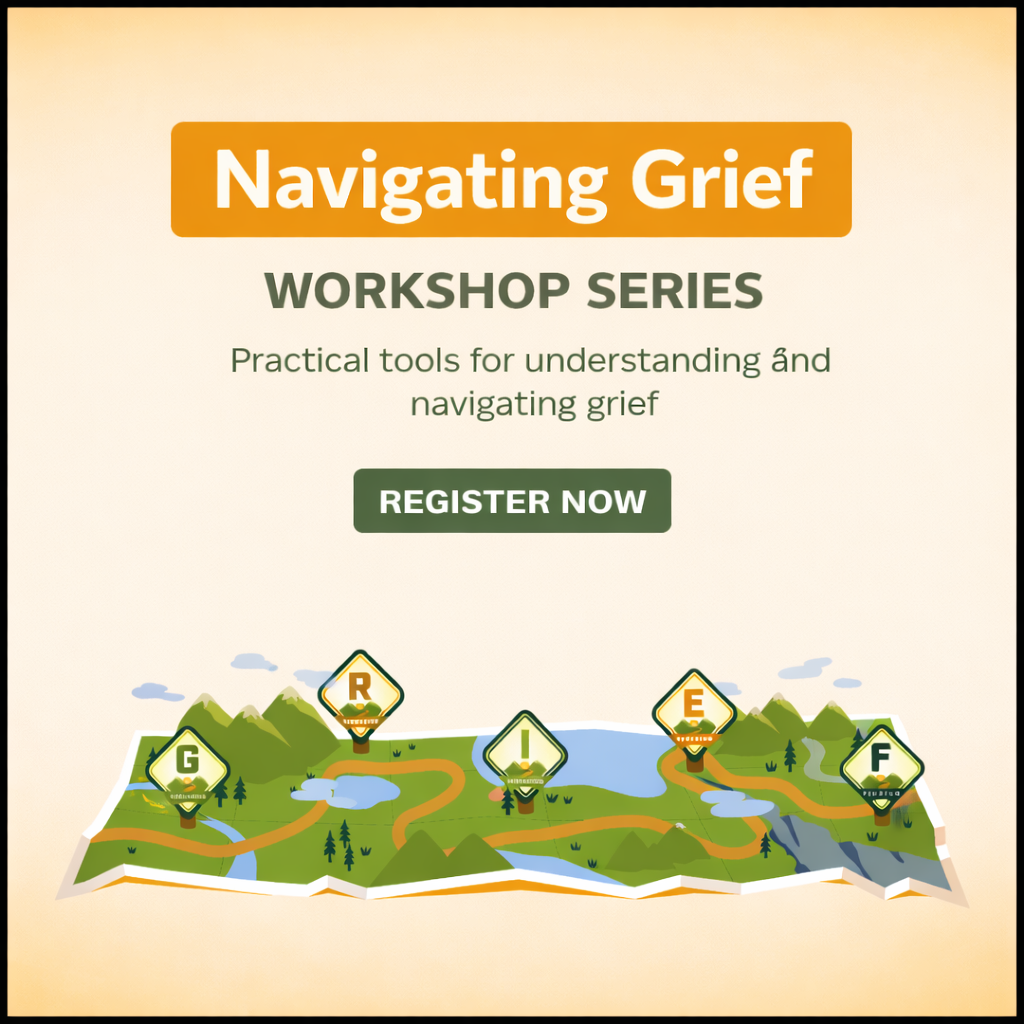 This self-paced workshop series offers clear grief-informed guidance and practical tools to help you make sense of what you are experiencing and navigate grief in a way that honors your experience without pressure to “move on” or leave your loved one behind. You’ll have something to return to when grief shows up and tools to help you move through your days.
